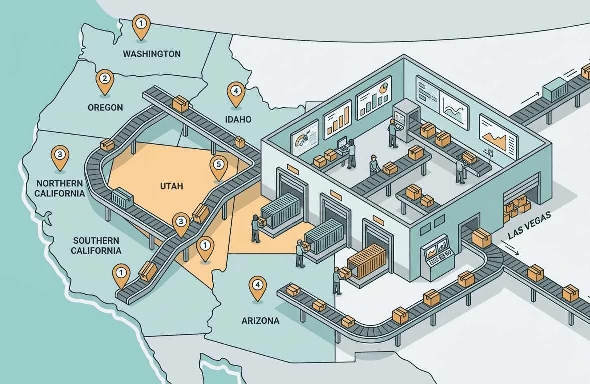 Looking for a West Coast 3PL? Learn why Las Vegas is the optimal Western US warehouse location for reaching CA, OR, WA, AZ, UT, and ID fast.