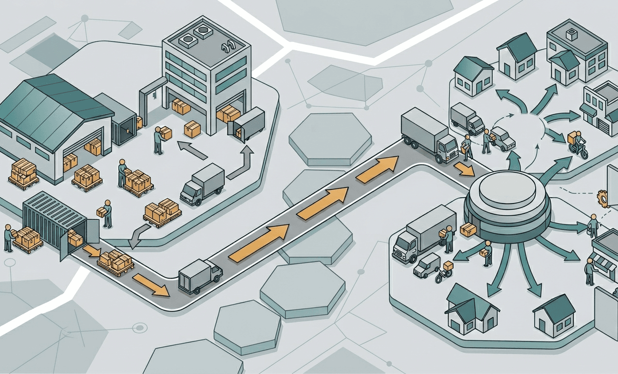 2. Bulk transport: The consolidated shipment moves via LTL (less-than-truckload) or FTL (full truckload) freight to a carrier injection point near the destination zone. This leg is much cheaper per package than individual parcel shipping.